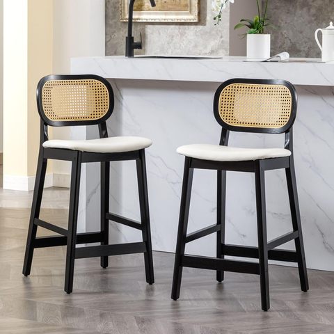 Truy cập Chiều cao thanh phân Bộ của 2 mây trở lại trang trại barstools giữa thế kỷ hiện đại Gỗ thanh ghế thoải mái Sherpa bọc